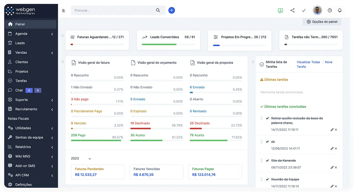 Webgen CRM unifies your business operations from first contact to final invoice - no third-party tools required.